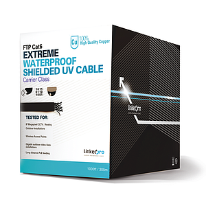Bobina de cable de 305 Metros Cat6+ CALIBRE 23 Exterior Blindado tipo FTP para CLIMAS EXTREMOS, UL, color Negro,